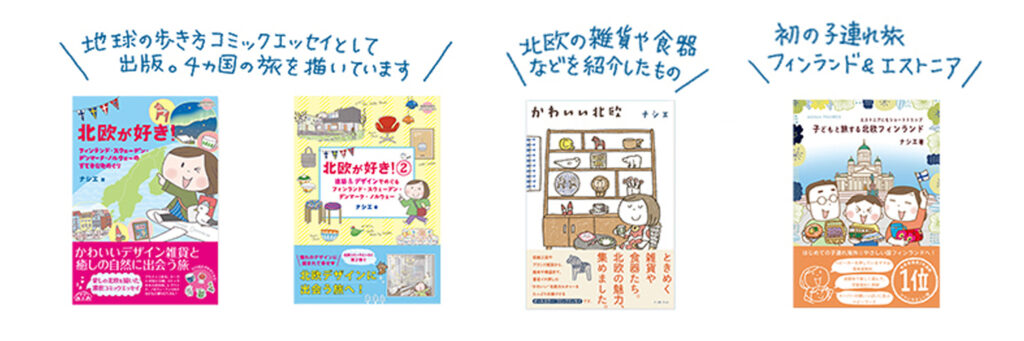 イラストレーターとして作品を描く傍ら、北欧好きが高じて、北欧の旅や文化を紹介するコミックエッセイを出版してきました。